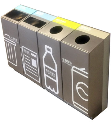 深圳新標準城中村街道社區不銹鋼五分類垃圾桶由有害垃圾、玻璃、金塑紙(為金屬、塑料、紙張的簡稱)、廚余垃圾、其他垃圾這5分類不銹鋼垃圾桶組合而成。其中金塑紙、其他垃圾日常產生量較大,所以分類收集容器也