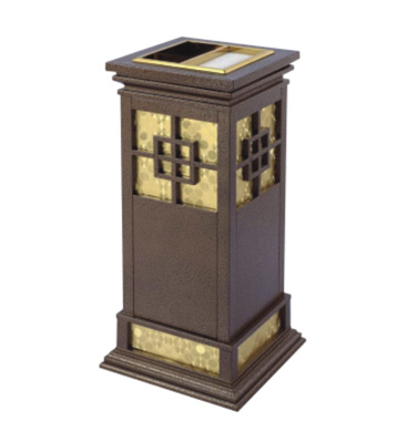 欣方圳為深圳嶺南天潤物業公司提供了一批室內垃圾桶,材質有鈦金類和鐵板噴塑類,外觀精美,使用價值高。 D272皇家座地煙灰桶規格:300*300*685,D295垃圾桶的規格為310*310*740,采用不銹鋼經鍍鈦處理,專業除