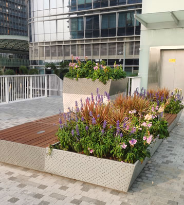 在當代城市綠化過程中,我們常常用各種草本花卉打造成各式各樣的花槽,護欄,塑木花箱等等,他們作為一種有生命的花卉群體裝飾圖案,被廣泛應用于景觀園林,公園戶外,城市各個街道,商業街等等。為持續推