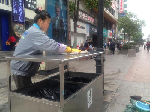 江漢路步行街地區(qū)管理辦公室相關負責人介紹,去年底,中山大道改造工程封路施工,江漢路每天往來人流量較以往增長兩到三倍。與此同時,封路后日均垃圾量激增至6噸,較以往增長3倍。該負責人解釋,由于上一批果皮箱容量太小,無法滿足需求,因此從去年開始,就在逐步設計新果皮箱的樣式大小。