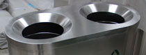 欣方圳機場商場不銹鋼分類垃圾桶投口采用斜口設計,垃圾投放更徹底,桶身采用1.5厚優質不銹鋼無縫焊接成型,結實耐用