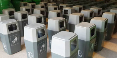 玻璃鋼垃圾桶桶身和內膽部分,采用高級玻璃鋼材質一次成型,經過打磨、除塵 、噴漆等一系列后期工藝然后出成品。