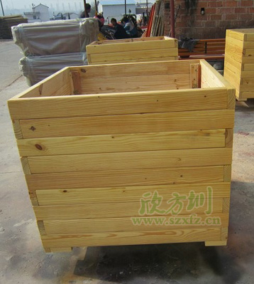 欣方圳木質花箱原材料采用真空泵排除空氣、填充防腐液、加壓滲透、抽真空排出多余防腐液達到先進的防腐防蟲工藝。