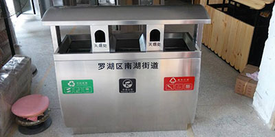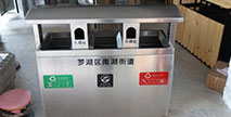 羅湖城管局采購擺放羅湖火車站三分類不銹鋼垃圾桶整體外型為不銹鋼原色,材質采用201優質不銹鋼制作,專業焊接打磨成型。