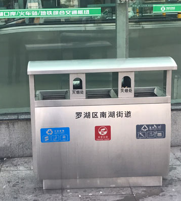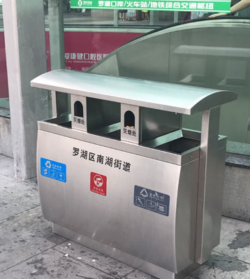 深圳羅湖火車站不銹鋼三分類垃圾桶擺放圖