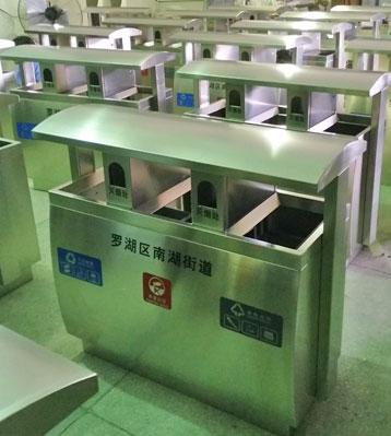 深圳羅湖火車站不銹鋼三分類垃圾桶欣方圳工廠生產圖