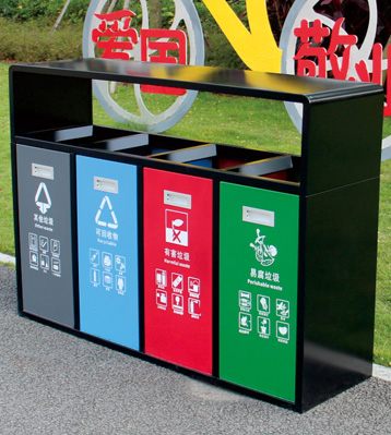 • 產品名稱:戶外4分類垃圾桶-戶外金屬烤漆四分類果皮箱