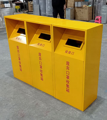 • 使用范圍:廢棄口罩垃圾桶回收箱整體方形黃色設計,用于疫情期間廢棄口罩垃圾產生量大收集處理,既美化了城市環境清潔,也有效阻斷病毒的傳播,尤其開學期間校園需求量大。