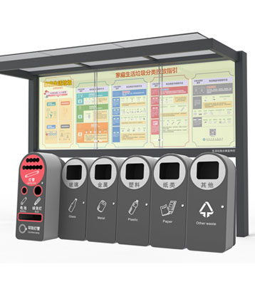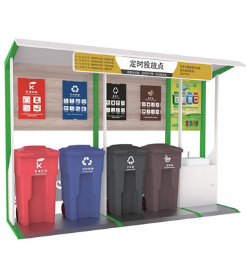 設(shè)有擋雨棚,可配備垃圾箱信息顯示屏、防水照明燈、廣告屏,進(jìn)行地面硬化。對社區(qū)玻金塑紙可回收物,其他垃圾,廚余垃圾,有害垃圾等生活垃圾定時(shí)定點(diǎn)投放收集.