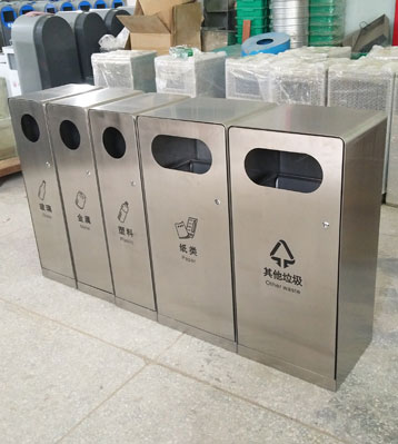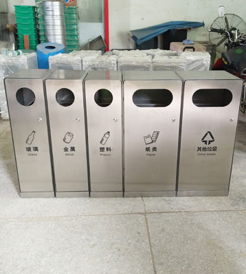 • 使用范圍:戶外五分類垃圾箱表面光滑、亮麗,是市政、企業、學校、小區、酒店、機場、汽車站等戶外分類垃圾收集擺放的首選。