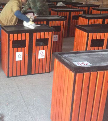 環保鋼木分類垃圾桶產品工廠生產圖片展示